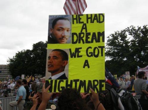 MLK was an American first and a staunch REPUBLICAN second. He peacefully fought to keep ALL Americans off the “Economic Plantation.” Barack Hussein Obama (originally Barry Sotero – alleged Christian – expert on Marxist Economics – Alinsky disciple) fights hard to keep/place Americans ON the “Economic Plantation.” We have a dream alright, let’s make it a Reality in NOV!!!