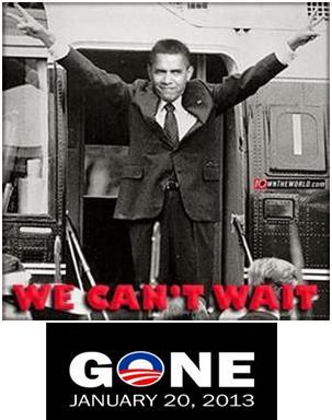 Obama’s “We Can’t Wait” campaign slogan is perfect and so very true because . . . “We can’t wait to throw this guy of of office in November!” Booya!