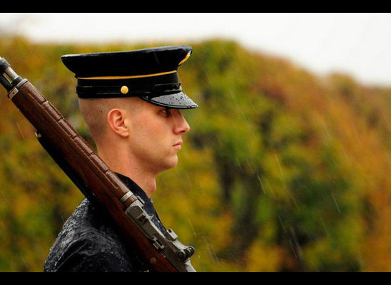 | WASHINGTON – As Hurricane Sandy forced schools, local governments and mass transit to shut down along the Eastern Seaboard, a member of The Old Guard continued his vigilance at the Tomb of the Unknown Soldier.