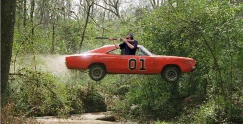 Obama shoots from a moving car