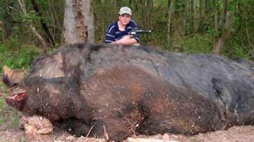 The reportedly largest pig ever (nicknamed “Hogzilla II”) was killed by an 11-year-old Alabama boy while hunting with his father. The boy’s father claims the pig weighed 1,051 lbs and was 9-foot-4 from the tip of its snout to its tail. That would make it roughly 250 pounds larger than the original Hogzilla, a wild hog killed in Georgia in 2004.