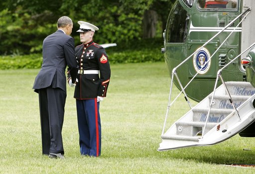 Pres Obama boarded Marine One without returning salute of US Marine at the steps. The Pres then came back out to shake the Marine’s hand.
