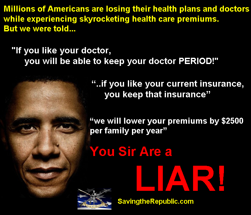 Let me be clear: Just because you have insurance you like, doesn’t mean you can keep it. If it doesn’t meet the new federal standards, your plan is going to get canceled. I guarantee it.