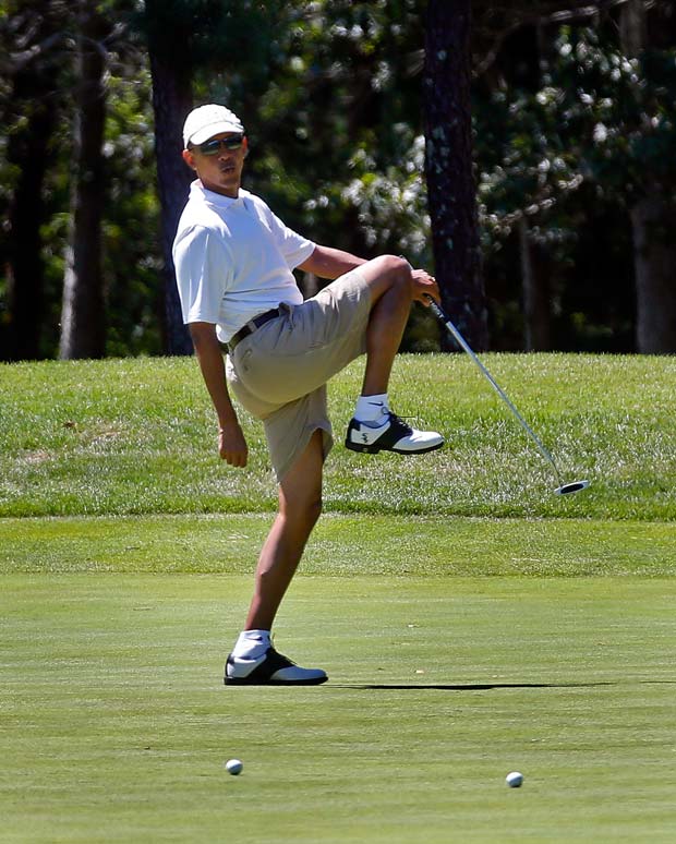 While his underlings selflessly toil to determine whether or not all the Assad government of Syria used chemical weapons against its own people (as seen on TV), President Obama played a 5 hour round of golf Sunday, closing in on a presidential total of 150 rounds of golf in four and half years. Meanwhile, The Royal Navy is ready for strikes on Syria, should Obama decide that his red line is more than the empty threat it seems to be.